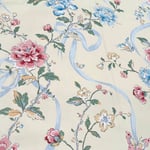 A beautifully feminine floral pattern, with delicate powder blue ribbons & whimsical butterflies spaced through out and set against a soft cream background.